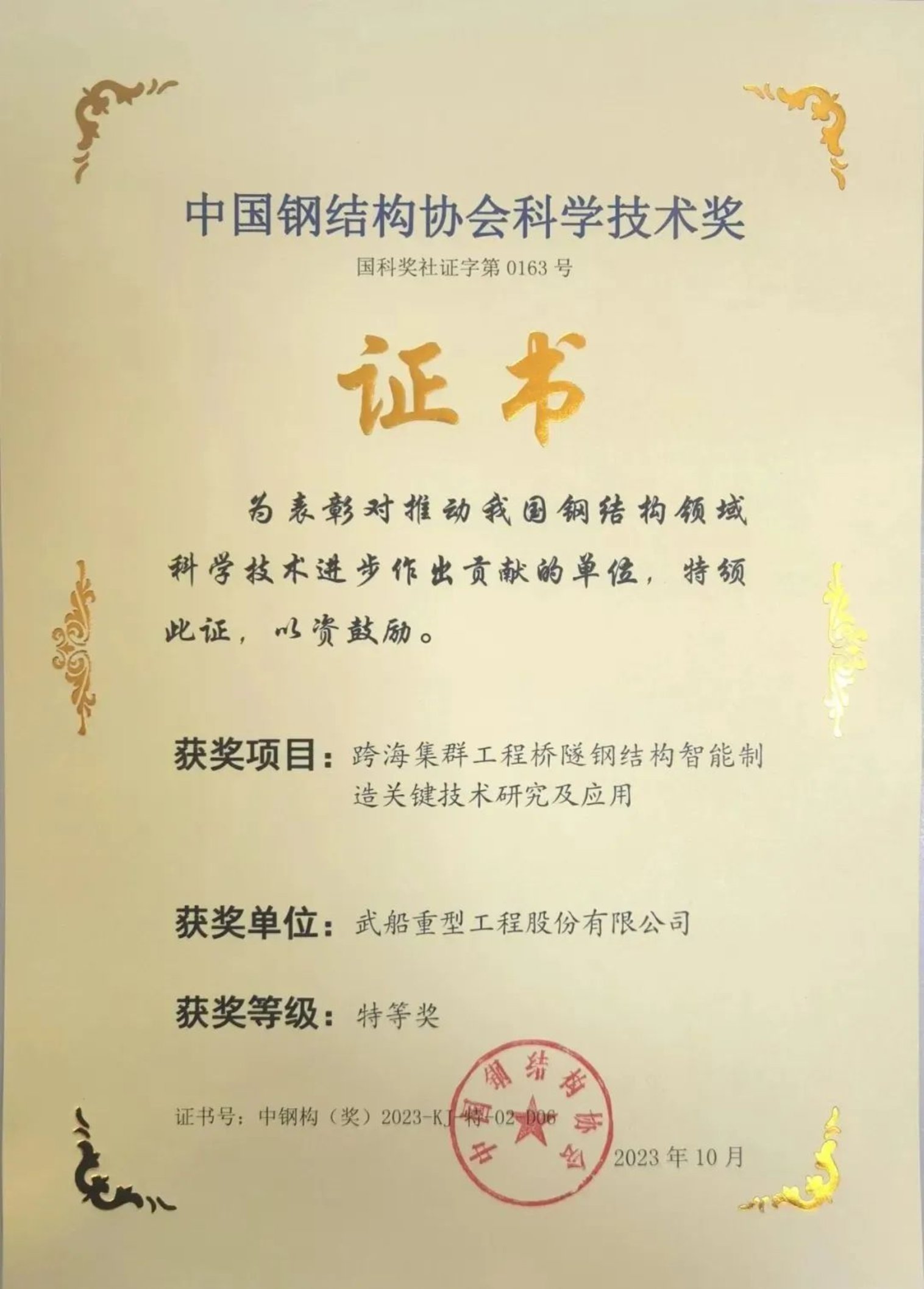 中國鋼結(jié)構(gòu)協(xié)會科學(xué)技術(shù)獎特等獎