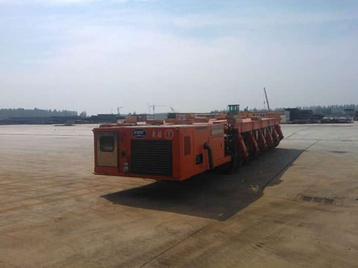 整車寬度 2.43m,是一種配備了液壓升降、液壓驅(qū)動(dòng)轉(zhuǎn)向、液壓驅(qū)動(dòng)行走的特種車輛,用于重型貨物的場(chǎng)地內(nèi)周轉(zhuǎn)運(yùn)輸,有橫向駕駛、普通、前軸轉(zhuǎn)向、后軸轉(zhuǎn)向、 斜向、角向 90°、原地轉(zhuǎn)圈七種轉(zhuǎn)向模式。車輪大轉(zhuǎn)角±110o。每軸線總質(zhì)量 48t,每軸線載質(zhì)量 43.5 t。配備無(wú)線遙控器(也可有線使用)。 液壓管路、電氣電纜連接均采用液壓快速接頭和電氣連接器,可多車并車,效率高。