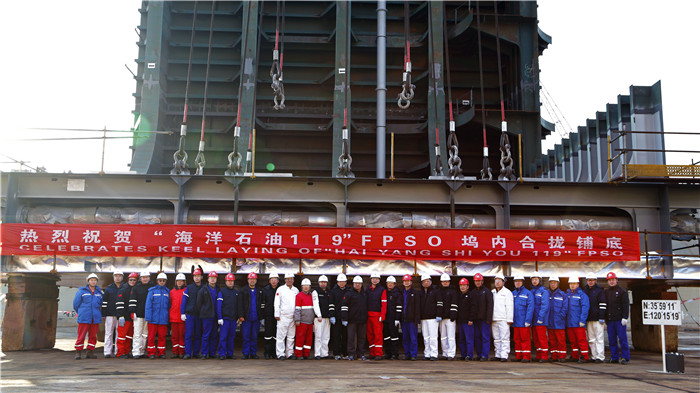 12月31日下午,北船重工新承接的流花16-2油田群開發(fā)項(xiàng)目“海洋石油119”FPSO船體建造工程在造船1號塢按期合攏鋪底。這是北船重工繼2007年成功交付10萬噸級海上浮式生產(chǎn)儲卸油船“海洋石油115”之后,時(shí)隔11年重新進(jìn)入FPSO新建造市場。該工程于今年6月簽約、開工。北船重工為此專門成立了流花FPSD項(xiàng)目部,嚴(yán)格按照生產(chǎn)節(jié)點(diǎn)計(jì)劃,抓好工程安全和質(zhì)量工作,并定期組織周檢、月檢,實(shí)施HSE管理創(chuàng)新工程,嚴(yán)把質(zhì)量制造關(guān),確保了工程順利推進(jìn)。北船重工副總經(jīng)理鮑會勇和業(yè)主、總包方代表,CCS船級社代表、BV船級社代表,以及部分造船部門的領(lǐng)導(dǎo)和職工出席了開工儀式。