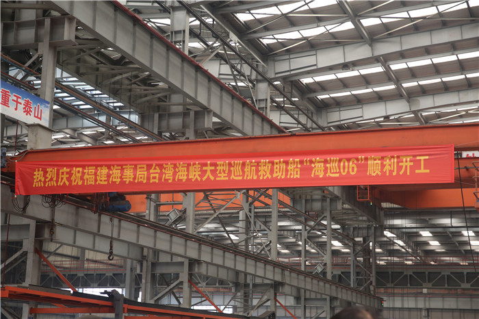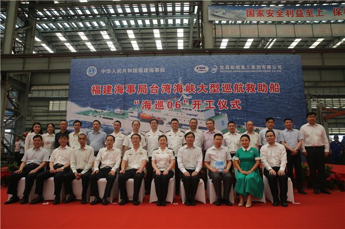 2019年5月23日上午,福建海事局臺(tái)灣海峽大型巡航救助船“海巡06”開(kāi)工儀式在武船集團(tuán)雙柳基地六連跨內(nèi)業(yè)車間舉行。