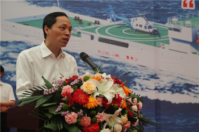 徐增福致辭表示,臺(tái)灣海峽大型巡航救助船承載著保障國(guó)家重大發(fā)展戰(zhàn)略、服務(wù)臺(tái)灣海峽兩岸交流交往、提升海事履職能力的重要使命,是福建海事局設(shè)施建造中的重大標(biāo)志性工程。我們堅(jiān)信并希望武船集團(tuán)能夠克服重重困難,在多方的大力支持及配合下,保質(zhì)保量按期交付一艘“精品船”、“明星船”,為進(jìn)一步增強(qiáng)我國(guó)海事監(jiān)管和應(yīng)急反應(yīng)能力,承擔(dān)起臺(tái)灣海峽海上交通安全保障和海上救援的重任助力!