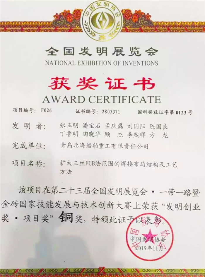 武船集團(tuán)派出由科技部、戰(zhàn)略部、海工院、重裝公司、北船重工組成的6人小組參加集團(tuán)公司展團(tuán),攜海工院的《一種海洋工程基地客貨后勤保障船》、重裝公司的《一種大型螺桿自驅(qū)安裝機(jī)》、北船重工的《擴(kuò)大三絲FCB法焊接范圍的焊接布局結(jié)構(gòu)及工藝方法》三項發(fā)明專利在國防知識產(chǎn)權(quán)展區(qū)進(jìn)行了展出。