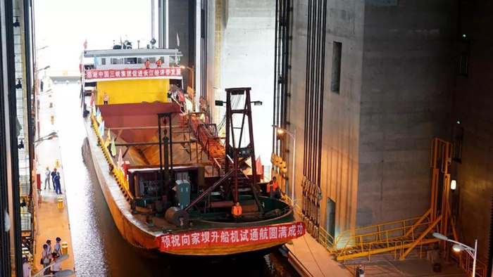 向家壩 升船機(jī)金結(jié)設(shè)備的制造、安裝、調(diào)試開(kāi)始于2013年3月,歷時(shí)62個(gè)月,終于在今天成功對(duì)社會(huì)開(kāi)放,開(kāi)啟長(zhǎng)江至金沙江的大門。試通航期間計(jì)劃每日通過(guò)4~8條船。這標(biāo)志著長(zhǎng)江黃金水道向上游金沙江流域延伸了175公里,途徑四川、云南兩省的7個(gè)縣,將長(zhǎng)江黃金水道聯(lián)通至云貴川,開(kāi)啟造福云貴川之路,起到“一帶一路”造福地方的作用。