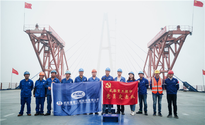 武船重工股份一直高度重視這座家門口工程,充分發(fā)揮多年來在鋼箱梁制作上的自身優(yōu)勢,全力推進(jìn)大橋建設(shè)。自2017年9月中旬進(jìn)入工地施工以來,項(xiàng)目部迎難而上,頑強(qiáng)作戰(zhàn),成立了臨時(shí)黨支部,組織開展黨員示范工程和專項(xiàng)勞動競賽活動,充分展現(xiàn)建橋鐵軍風(fēng)采。在岸側(cè)鋼箱梁吊裝頂推作業(yè)中,施工人員注重頂推的技術(shù)特點(diǎn),大膽心細(xì)、精心施工,有效地控制了鋼箱梁的線型和安裝精度。在江側(cè)鋼箱梁吊裝作業(yè)中,施工人員頂酷暑、冒嚴(yán)寒,奮戰(zhàn)在凌空的橋面上。尤其是元旦春節(jié)極寒天氣期間,施工人員仍堅(jiān)守崗位,保證吊裝施工不間斷、保證安裝焊接質(zhì)量不降低。在整個(gè)工地安裝期間,武船重工股份統(tǒng)一指揮,內(nèi)場制造、涂裝、發(fā)運(yùn)、工地吊裝焊接,密切配合、環(huán)環(huán)相扣,有力地保障了整體施工質(zhì)量和進(jìn)度,確保了大橋按期優(yōu)質(zhì)合龍。