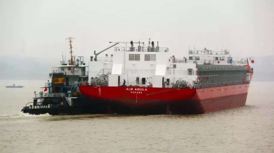 ▲新型13000噸甲板運(yùn)輸船2號(hào)船離廠