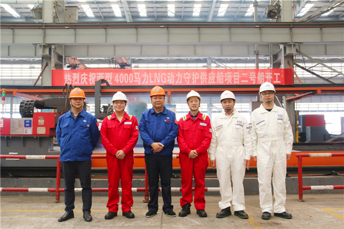 2019年10月31日,由武船集團船舶公司為中海油服建造的兩型4000馬力LNG動力守護供應船項目2號船在武船雙柳基地順利開工,船東、船檢以及船舶公司相關領導參加開工活動。這也標志著該項目由前期生產技術準備階段進入生產建造階段。
