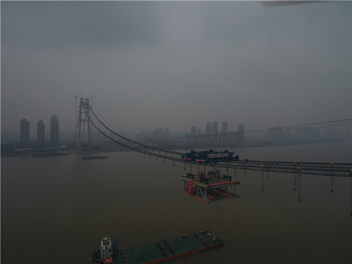 楊泗港長江大橋是武船集團(tuán)參與建造的武漢長江段第九座大橋,位于鸚鵡洲長江大橋和白沙洲長江大橋之間,距下游鸚鵡洲長江大橋約3.2公里,距上游白沙洲長江大橋約2.8公里。大橋全長4.134公里,其中主橋段長1700米(兩塔間距),整體橋型為單跨雙層鋼桁梁懸索橋,是世界上工程規(guī)模最大的雙層懸索橋,其跨度目前在國內(nèi)同類橋梁中排名第一,世界排名第二。