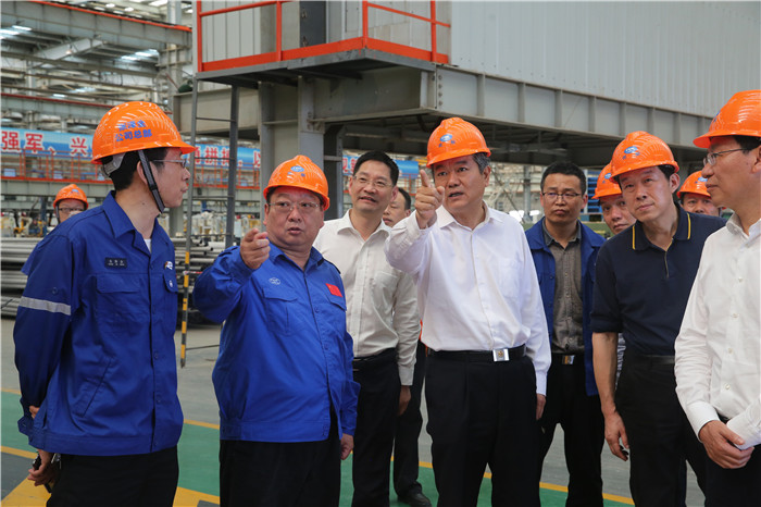 2019年5月23日,湖北省政協(xié)黨組副書記、常務(wù)副主席李兵一行到武船集團雙柳基地調(diào)研指導(dǎo)工作,武船集團黨委副書記、工會主席、監(jiān)事會主席楊少稀就雙柳基地規(guī)劃建設(shè)、產(chǎn)品建造和生產(chǎn)研發(fā)等方面情況進行了匯報。
