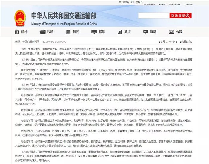 交通運(yùn)輸部、國務(wù)院國資委、中華全國總工會(huì)聯(lián)合決定深入開展向港珠澳大橋建設(shè)者學(xué)習(xí)活動(dòng),號召學(xué)習(xí)港珠澳大橋建設(shè)者逢山開路、遇水架橋的奮斗精神。