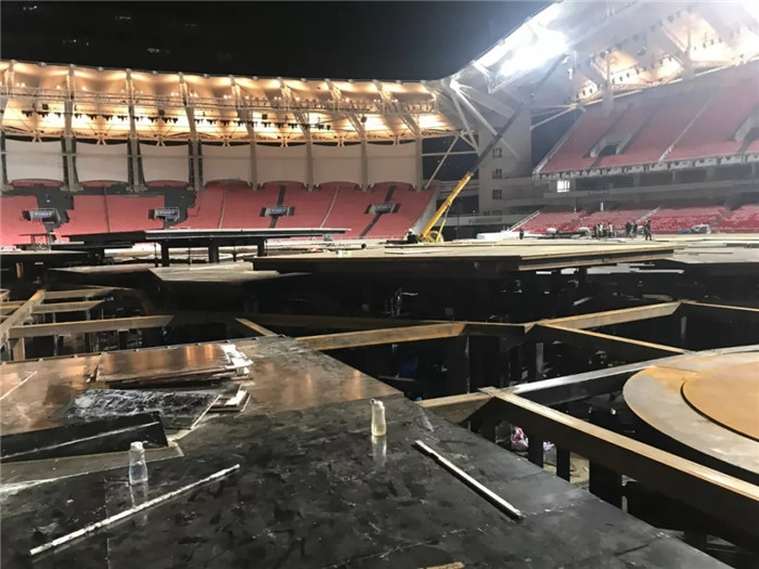 “如果真的按照最初構(gòu)想方案實(shí)施,我們可能需要破壞地下原有電路、管路系統(tǒng),并重新構(gòu)建,對(duì)于我們而言時(shí)間過(guò)于緊迫,在邊討論、邊設(shè)計(jì)、邊制造的條件下,這個(gè)完美的夢(mèng)想最終沒(méi)能變成現(xiàn)實(shí),確實(shí)有點(diǎn)遺憾。”舞臺(tái)項(xiàng)目工程技術(shù)負(fù)責(zé)人許露說(shuō)道。