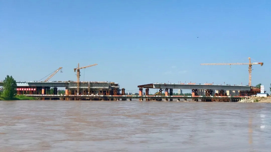 中衛(wèi)南站黃河大橋位于寧夏回族自治區(qū)的中衛(wèi)市機場大道與平安西路交叉處,線路全長1.84千米,武船重工股份承擔該橋16#-20#橋墩范圍內(nèi)的鋼結(jié)構(gòu)施工及架設,處于黃河流域水流湍急的河段,施工難度較大,施工風險較高。為此,武船重工股份收集了歷年水文資料以及多方請教,預判“洪峰”的到來期,同時對水中的八組臨時支架進行全面加固,制定了專項施工計劃,增加施工人員,加快施工進度,最終在“洪峰”來臨之前,完成了鋼箱梁頂推工作。