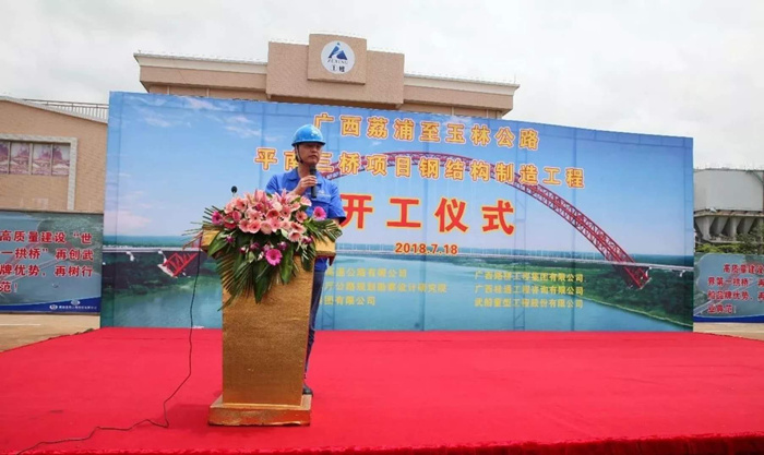 7月18日上午,平南三橋鋼結(jié)構(gòu)工程在武船南方基地點火開工,這標(biāo)志著世界上最大跨徑的拱橋已正式進(jìn)入建造階段,廣西荔浦至玉林高速公路有限公司、廣西路橋工程集團(tuán)公司、廣西桂通工程咨詢公司等單位相關(guān)領(lǐng)導(dǎo),武船重工股份總經(jīng)理吳躍波,副總經(jīng)理吳濤,總經(jīng)理助理杜民出席開工儀式,武船重工股份項目部成員及員工代表30余人參加開工儀式。