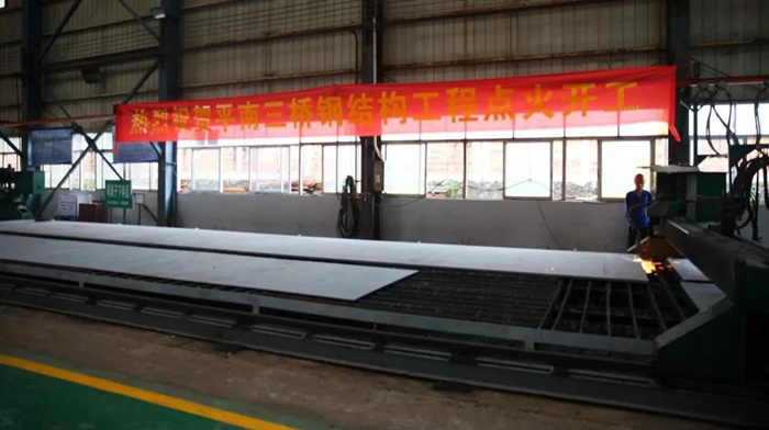平南三橋為廣西荔浦至玉林高速公路平南互通連接線上跨越潯江的一座特大橋梁,屬中承式鋼管混凝土拱橋,跨徑達(dá)575米(計算跨徑560米),武船重工股份承建該橋的鋼結(jié)構(gòu)工程包括鋼管拱和橋面格子梁,總用鋼量1.5萬余噸,值得一提的是,從5月24日簽訂該橋合同到產(chǎn)品點火開工,武船重工股份用時不到兩個月,產(chǎn)品從整體上實現(xiàn)了早策劃、早部署、早開工。