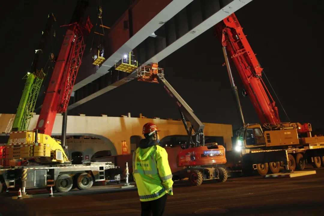 自2019年6月4日TJ01標(biāo)段全線(xiàn)首節(jié)鋼板梁開(kāi)始吊裝以來(lái),歷時(shí)近15個(gè)月,共計(jì)439天,整個(gè)施工過(guò)程先后克服了重要交通路口的封路改道、老橋上架梁以及全線(xiàn)跨徑最長(zhǎng)、難度最大的迎賓大道的改道施工和新冠疫情等多重難關(guān),最終按期優(yōu)質(zhì)地完成了標(biāo)段全部施工任務(wù)。