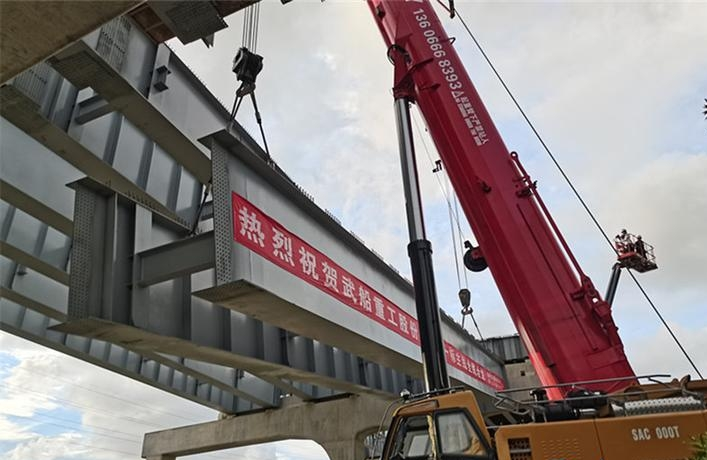 8月16日下午17時(shí)許,隨著最后一片鋼板梁成功吊起,在兩臺(tái)起重機(jī)的默契配合下,穩(wěn)穩(wěn)地落在兩端支座之上,并對(duì)孔成功,由中國(guó)船舶武船集團(tuán)武船重工股份承建的臺(tái)州路澤太高架TJ01標(biāo)段鋼板梁全部架設(shè)完成。