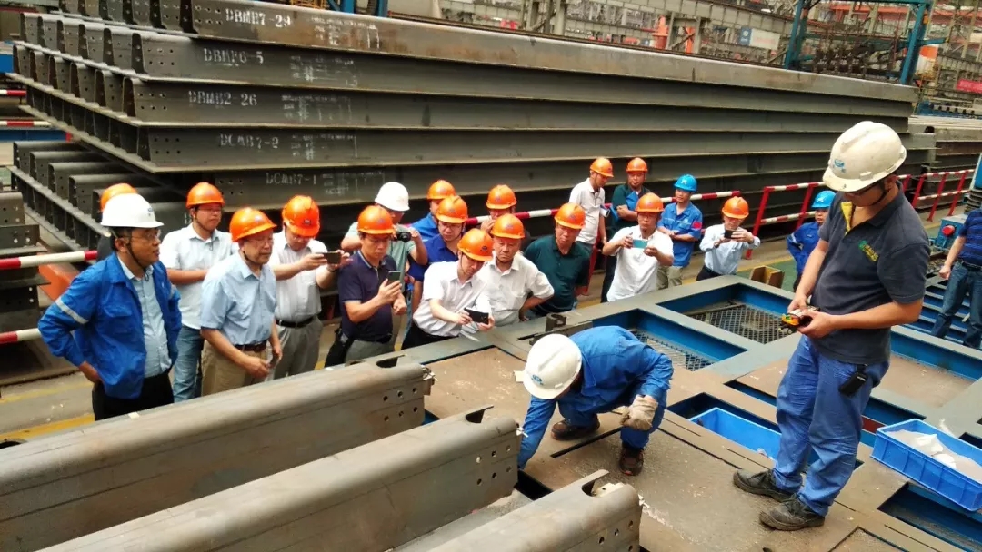 與會專家和領導查看了面板單元件生產(chǎn)現(xiàn)場和產(chǎn)品質量狀況,聽取了《棋盤洲鋼箱梁制造加工焊接工藝評定》、《首制件面板單元件施工總結》和《面板U肋焊縫質量檢測與驗收標準》的匯報,審閱了相關技術文件和檢測資料,經(jīng)討論認為,武船重工股份提供的技術資料齊全,檢測數(shù)據(jù)可信,符合評審要求。面板單元件制造施工準備充分,質量保證體系完整,工藝裝備安全可靠,工藝方案可行,在科學管理和技術創(chuàng)新方面做了積極探索,面板單元件制造滿足設計及相關規(guī)范要求。大橋施工質量得到與會專家和領導們的一致認可和高度評價,可進行后續(xù)面板單元件批量生產(chǎn)制造。
