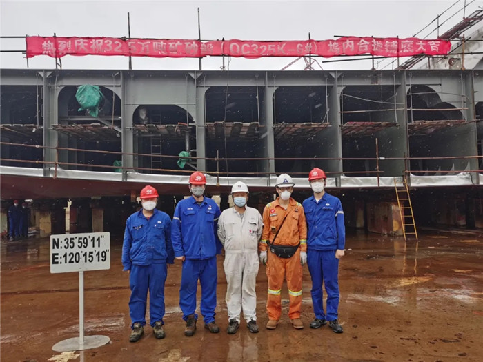 北船重工項目部精心組織,精密部署,周密協(xié)調(diào),精益施工,抓主線,理流程,合理編排計劃,對重點項目進行重點編排施工計劃,合理規(guī)避交叉作業(yè)及避免返工施工。同時,管理人員下沉生產(chǎn)一線,在提前梳理、汲取32.5萬噸礦砂船1、2號船經(jīng)驗的基礎(chǔ)上,全面投入到現(xiàn)場施工及報驗工作,加大與船東船檢溝通協(xié)調(diào)力度,嚴(yán)把檢驗關(guān)口,提高報驗效率和頻率,最終實現(xiàn)了該船碼頭系泊調(diào)試有效周期僅為57天,刷新了該系列船舶最短碼頭施工周期。