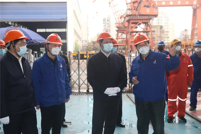 3月25日,湖北省委書記應(yīng)勇到武船集團調(diào)研復(fù)工復(fù)產(chǎn)、加快發(fā)展情況。省委常委、武漢市委書記王忠林,副省長曹廣晶及省委、省政府有關(guān)部門負責(zé)同志參加調(diào)研。武船集團黨委書記、董事長陳?劍?黨委副書記、總經(jīng)理梁師清及武船集團有關(guān)部門負責(zé)人陪同調(diào)研。