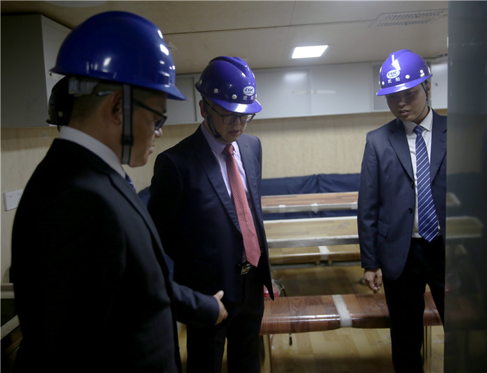 在有關(guān)負(fù)責(zé)人的陪同下,姚勝華重點檢查了該艦駕駛室、機艙、廚房、餐廳、臥室等主要區(qū)域,詳細(xì)了解當(dāng)前各區(qū)域在實施過程中重點、難點,并針對一些疑難問題,提出解決方案。
