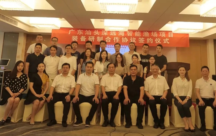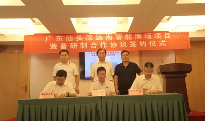 2018年8月22日,武船集團湖北海洋工程裝備研究院有限公司及中船重工海融裝備(海南)有限公司與廣州中譽科技產(chǎn)業(yè)控股集團有限公司在廣東省汕頭市舉行簽約儀式。在武船集團黨委書記、董事長楊志鋼,汕頭市海洋與漁業(yè)局局長周昭勇的共同見證下,與中譽集團簽訂了《廣東汕頭深遠海智能漁場項目裝備研制合作協(xié)議》。