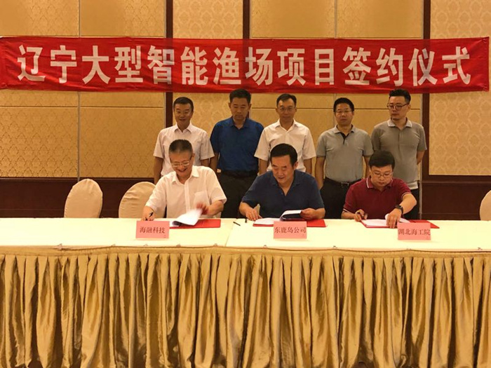 2018年8月24日,武船集團(tuán)旗下的湖北海洋工程裝備研究院有限公司和中船重工海融裝備(海南)有限公司與大連東鹿島海洋科技有限公司在遼寧省大連市簽訂了《遼寧冷水團(tuán)超大型智能漁場項目裝備研制合作協(xié)議》,中船重工經(jīng)濟(jì)運行部主任于逢平、副主任羊維瓚、資產(chǎn)部副主任李嘉華見證了簽約儀式。