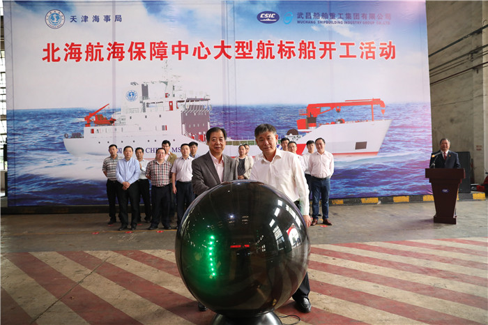 2019年4月26日上午,北海航海保障中心大型航標(biāo)船開工活動在武船集團(tuán)船舶公司內(nèi)業(yè)車間舉行。北海航海保障中心副主任李樹兵、天津海事局基建裝備處副處長姜大寧、武船副總經(jīng)理王渭齡等相關(guān)單位領(lǐng)導(dǎo)及來賓參加了此次活動。