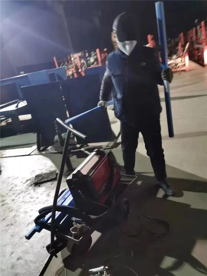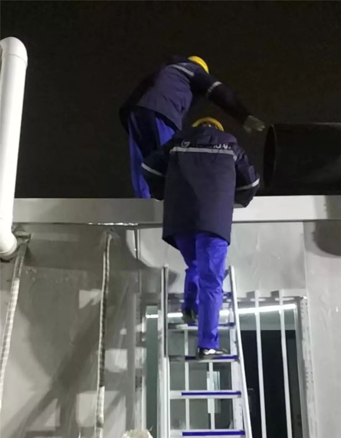 焊接時(shí),大家發(fā)現(xiàn)這里的所有管件都沒有坡口,且裝焊時(shí)需要踩著梯子、抬著管子、仰著頭,卡在風(fēng)管和電纜中間僅20-30cm的間隙內(nèi)操作,但這些對于“久經(jīng)沙場”的軍工師傅們來說真的不值一提。