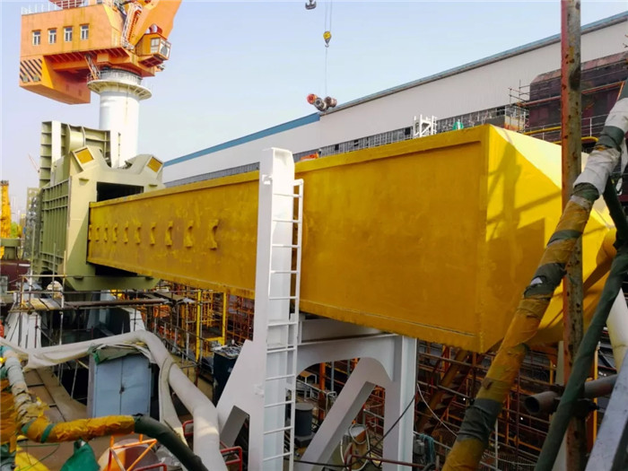 針對鋼樁部件船臺安裝特點,武船集團模塊公司制定了周密的安裝方案,設(shè)繪了鋼樁全三維數(shù)字模型,通過ansys分析吊裝作業(yè)過程受力狀態(tài),精準計算確定了吊運點位和吊裝方式,實施了多次模擬吊裝和試吊作業(yè),根據(jù)實際情況編制了多種應(yīng)急預(yù)案,為正式安裝進行了周密準備。