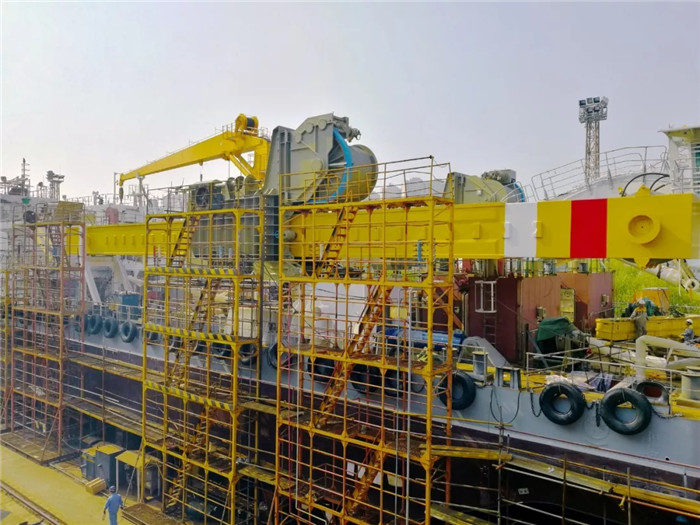 近日,長江三峽壩區(qū)航道維護鏟斗挖泥船鋼樁定位系統(tǒng)迎來關(guān)鍵節(jié)點,船臺安裝階段難度最大的3組巨型鋼樁安裝作業(yè)任務(wù)正式啟動,經(jīng)過周密準備和科學吊裝作業(yè),首組巨型鋼樁順利安裝到挖泥船船艉左舷,與先期安裝完成的一臺固定鋼樁套實現(xiàn)高空“穿針引線”和完美合體。