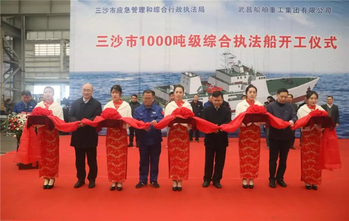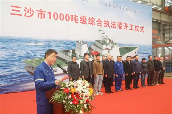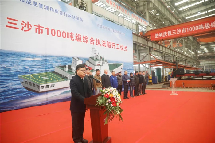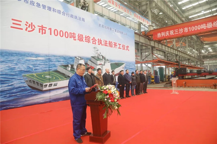 2019年12月2日上午10點08分,三沙市1000噸級綜合執(zhí)法船開工儀式在武船集團雙柳基地順利舉行。