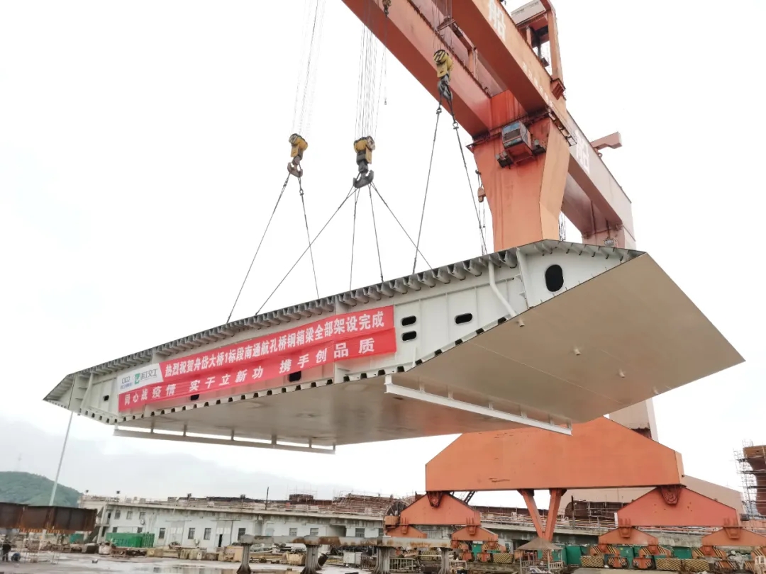 復工后,武船重工股份堅持疫情防控和復工復產(chǎn)兩手抓,開展勞動競賽,在保證質量和安全的前提下,加快生產(chǎn)進度,最終在三個鋼結構標段中拔得頭籌,在臺風來臨前完成了全部節(jié)段的吊裝,降低了橋位施工風險。