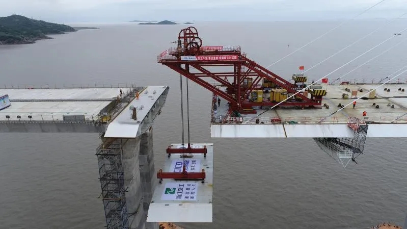 6月22日,中國船舶武船集團武船重工股份承建的舟岱大橋DSSG01標南通航孔橋最后一節(jié)鋼箱梁吊裝完成,精準落位,南通航孔橋率先實現(xiàn)邊跨合龍,較計劃合龍時間節(jié)點提前了6天。