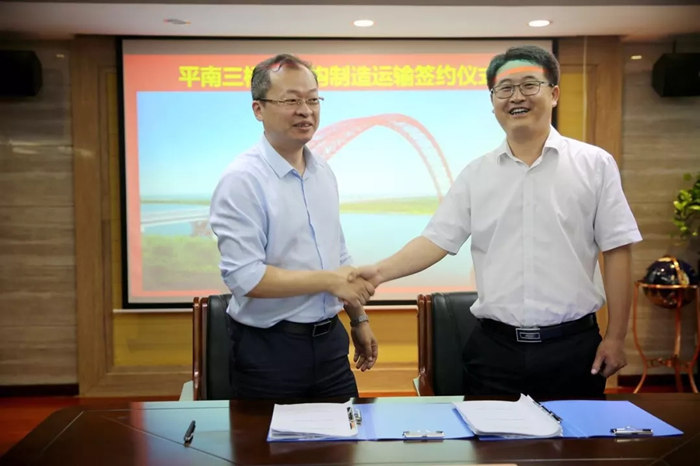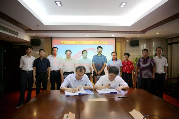 5月24日,武船重工股份與廣西路橋集團(tuán)公司簽訂平南三橋鋼結(jié)構(gòu)加工合同,武船重工董事長(zhǎng)、黨委書(shū)記楊宏剛,常務(wù)副總經(jīng)理李立明,副總經(jīng)理蔡峰出席簽字儀式,總經(jīng)理助理杜民代表公司在合同書(shū)上簽字。