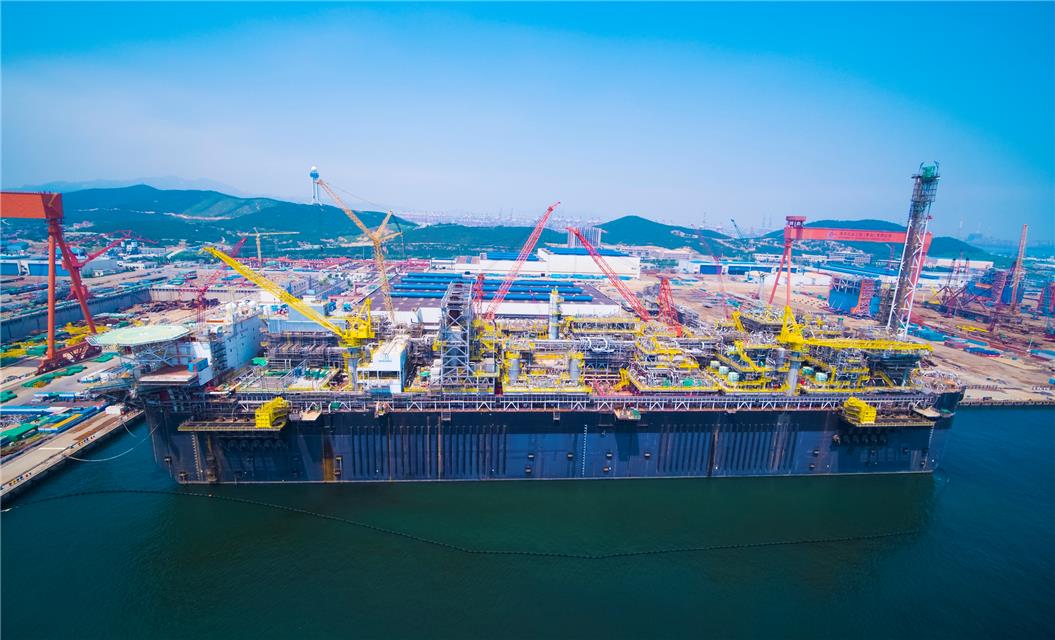 首次由我國自主集成的世界級FPSO(海上浮式生產(chǎn)儲卸油裝置)P67船在青島成功交付巴西(資料圖片)